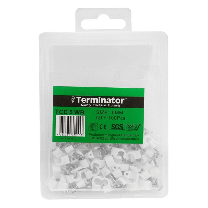Terminator cable clips 5mm are made from unbreakable and flexible PVC. It is great for home and office cable management. Can be used in Electrical, Ethernet, Dish Wire, Coax Cable, or any other wire/cable to organize them in a proper manner. It is acid, corrosion, and aging resistant, and also has a strong load-bearing capacity. Manage your cluttered computer and other cables/wires with these durable Terminator cable clips.