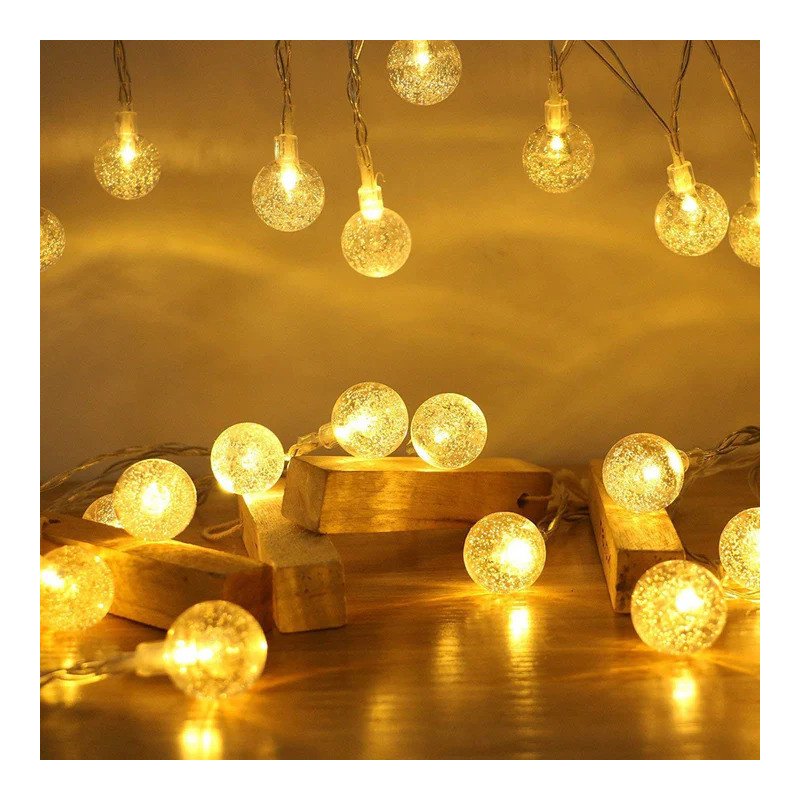 High Quality: 500LED 50M translucent globe ball shaped string lights with solid construction plastic material, adapter powered. And exquisite new upgraded crystal bubble ball has a crystal-clear color and contains many small bubbles can refract the beautiful light.