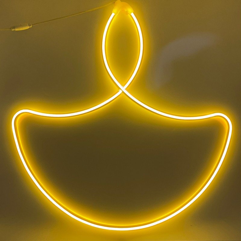 • Vibrant Neon Sign Strip Light in Diya Shape: Crafted with high-quality neon strip lights, this Diya-shaped neon sign emits a bright and soothing glow, perfect for bringing a traditional yet modern touch to your home decor. Its eye-catching design makes it an ideal centerpiece for Diwali celebrations, Pooja rooms, and mandir decorations.