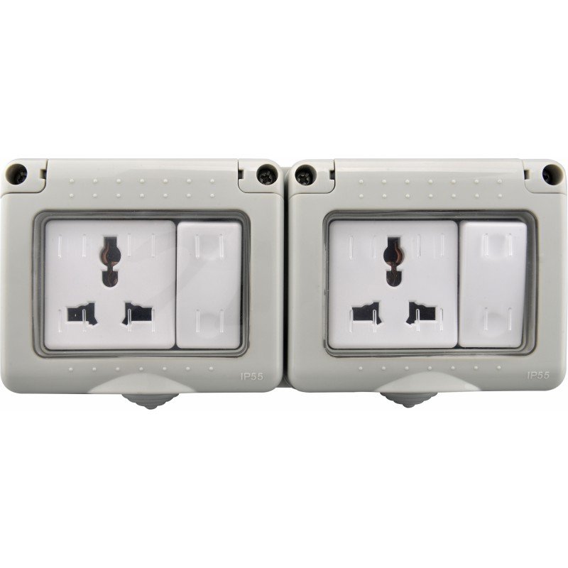 DOUBLE UNIVERSAL SOCKET WITH SWITCH WEATHERPROOF IP55
