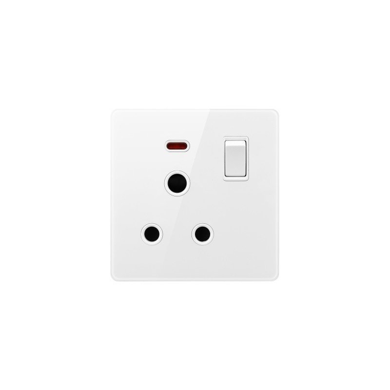 15A 1 GANG SWITCH + SOCKET WITH NEON-GLASS WHITE