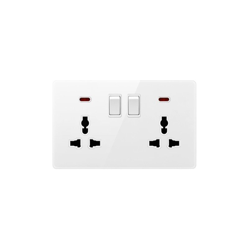 SWITCHED DOUBLE 3PIN UNIVERSAL SOCKET WITH NEON-GLASS WHITE