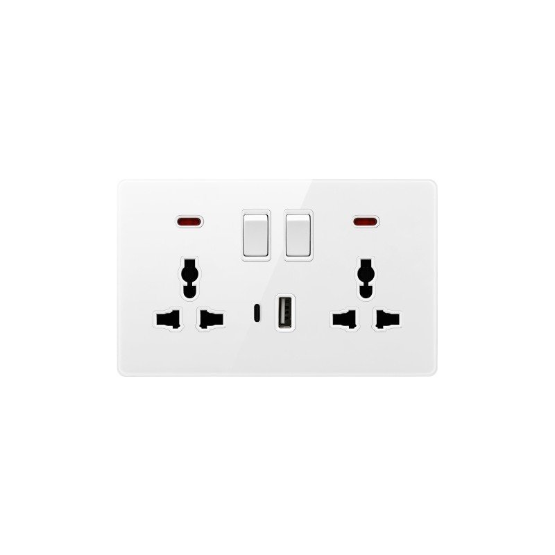 - Switched Double 3Pin Universal Socket USB & Type C with Neon