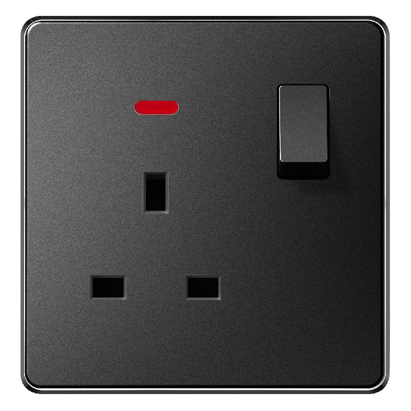 13A 1 GANG SWITCH + SOCKET WITH NEON - BLACK