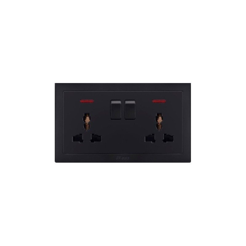 DOUBLE MF SOCKET WITH SWITCH-BLACK SERIES