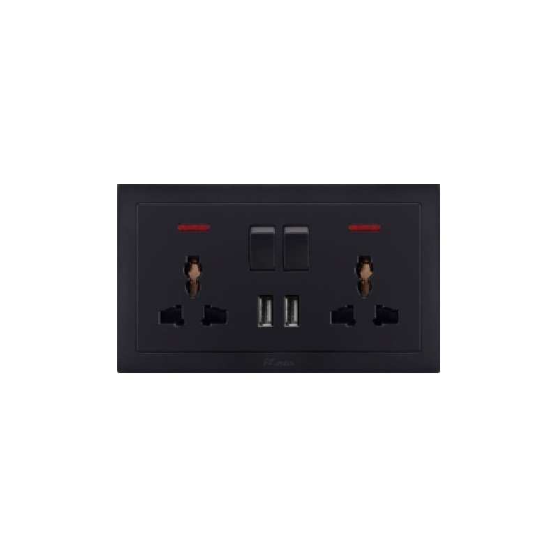 DOUBLE MF SWITCHED SOCKET WITH 2 USB-BLACK SERIES