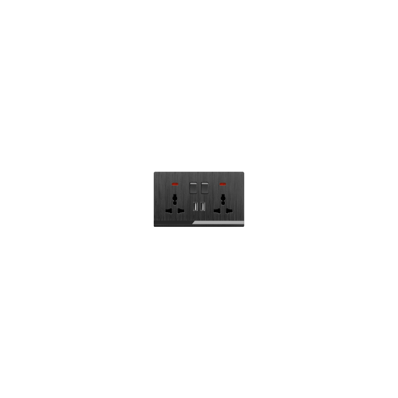 DOUBLE MF SWITCHED SOCKET WITH 2 USB-BLACK SERIES
