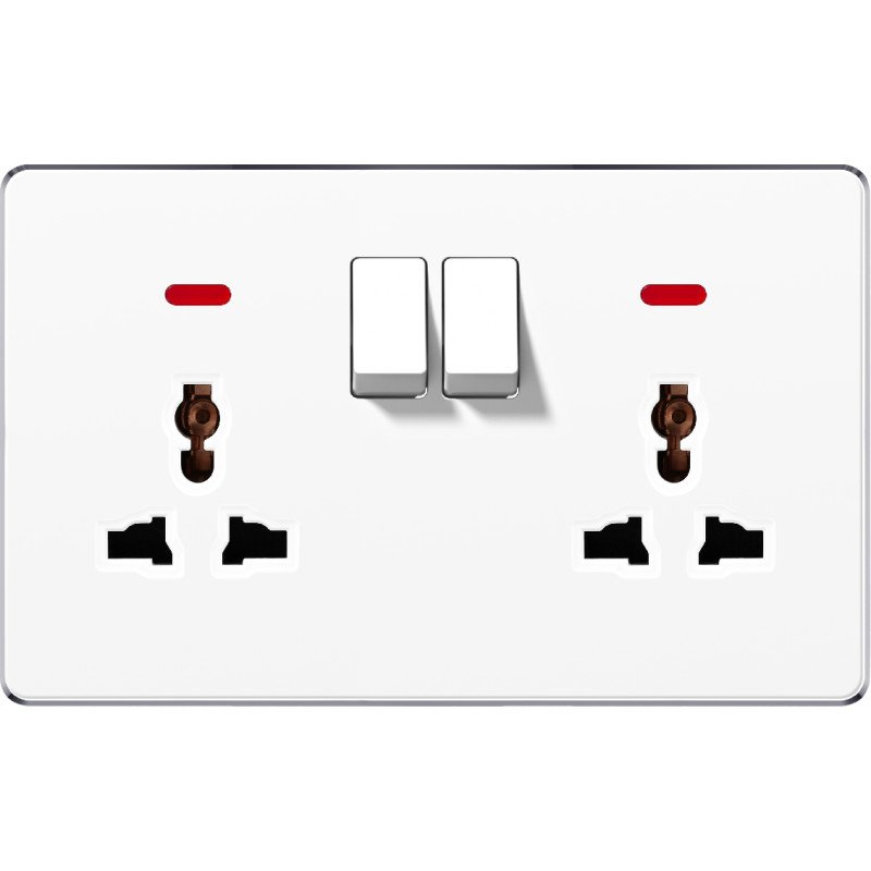 - Switched Double 3 Pin Universal Socket with NeonÂ